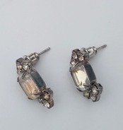シルバーカラーメタルをベースにクリアレクタングルストーンが映える素敵なデザインのヴィンテージピアス。