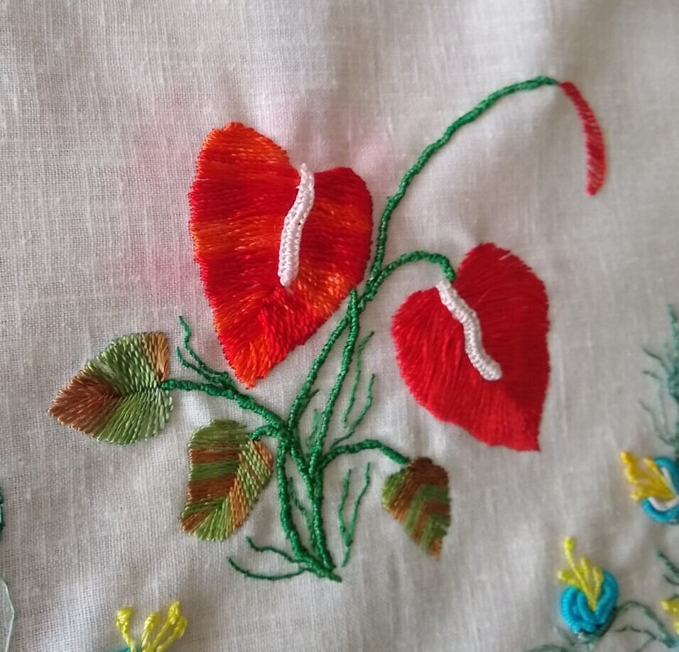 とても丁寧で美しい刺繍がいくつもの手法で施されています。