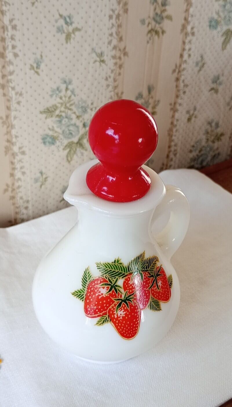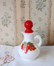 赤い栓と苺のトランスファーがとても可愛いヴィンテージボトルです。