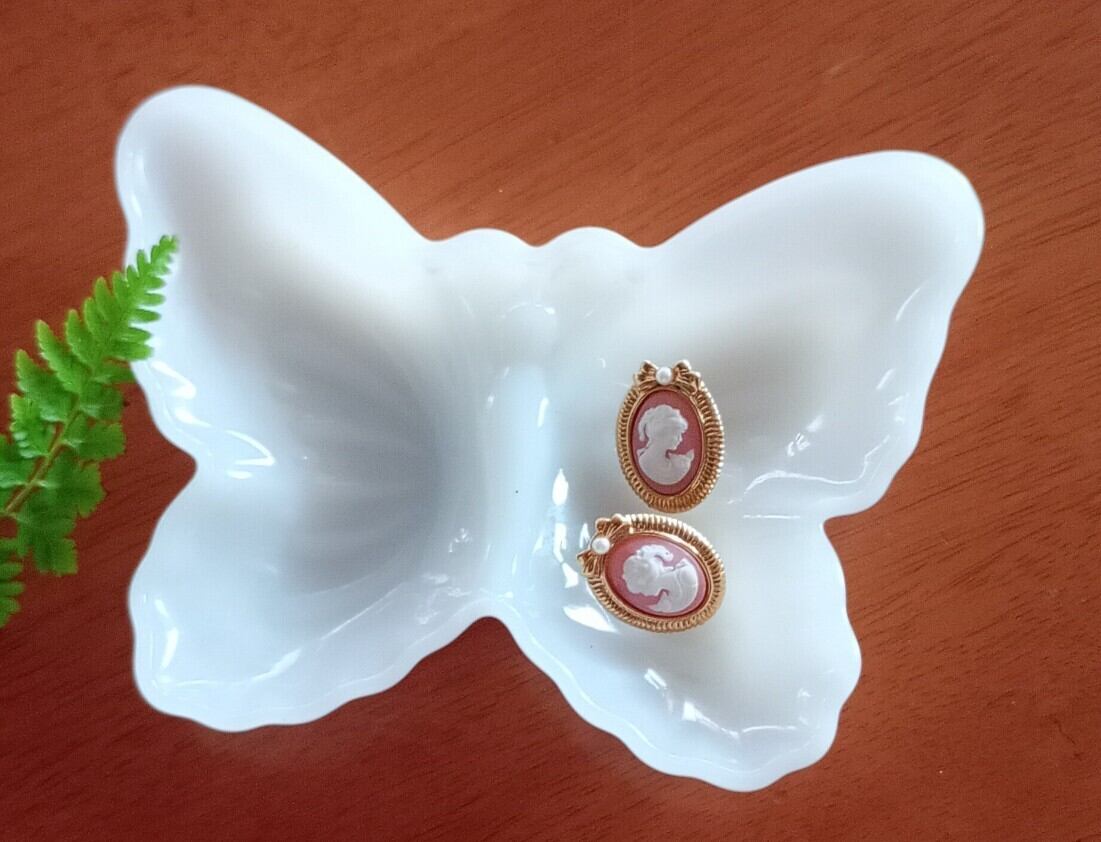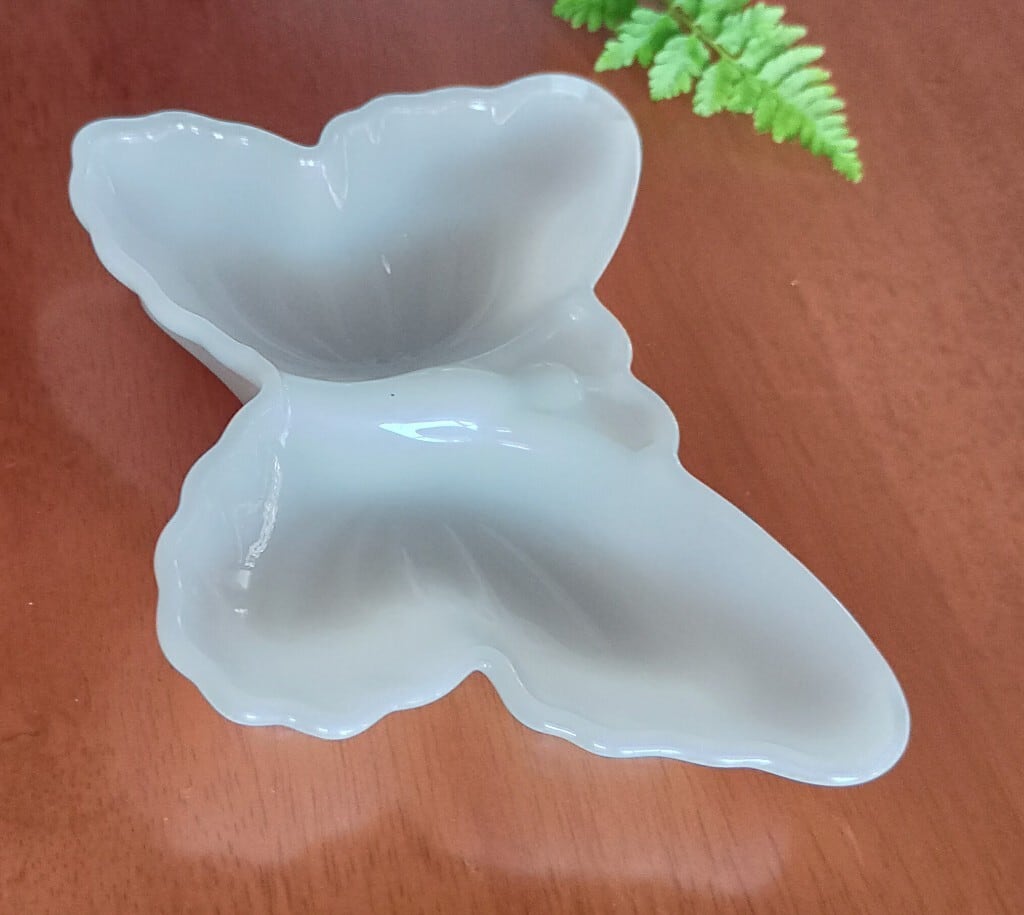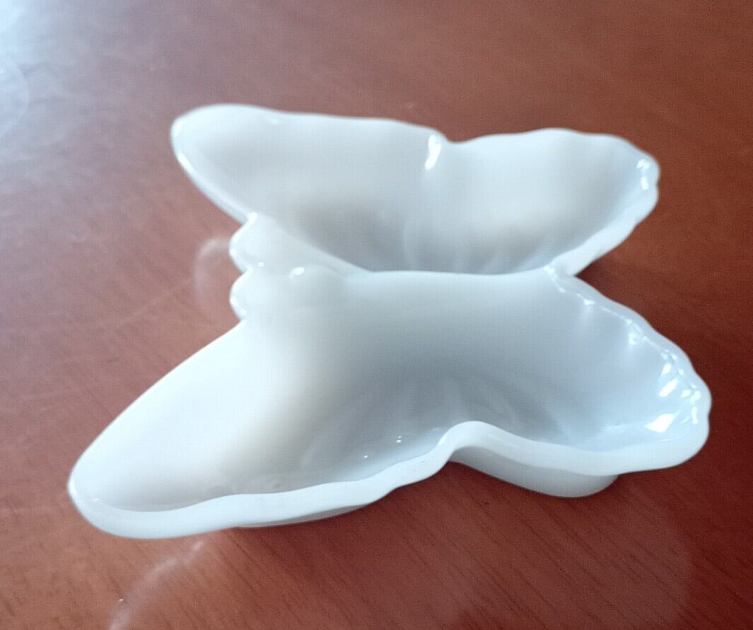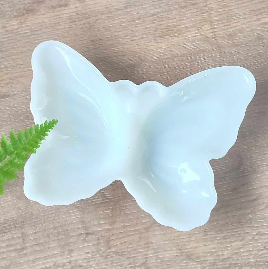 蝶の形をしたミルクガラス製のヴィンテージソープディッシュ。ソープディッシュとは文字通り石鹸入れに使うディッシュです。