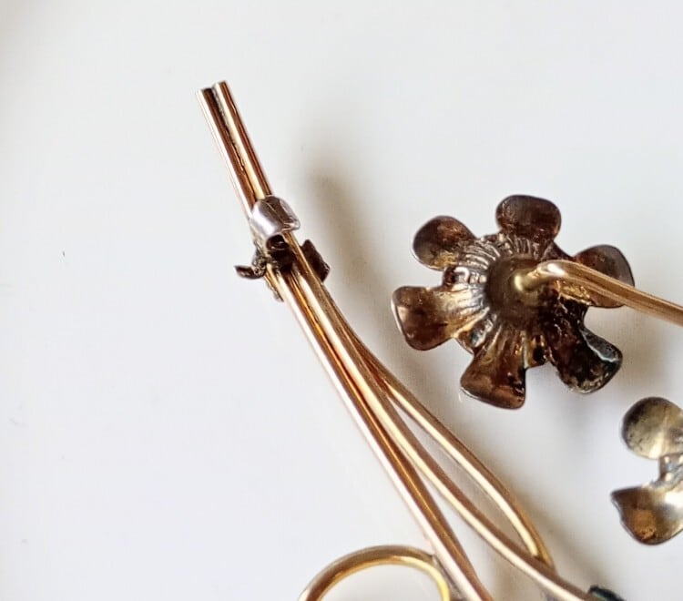 留め金部分が壊れていますが、ちょうどCフックのようになっていてブローチは留める事が可能です。