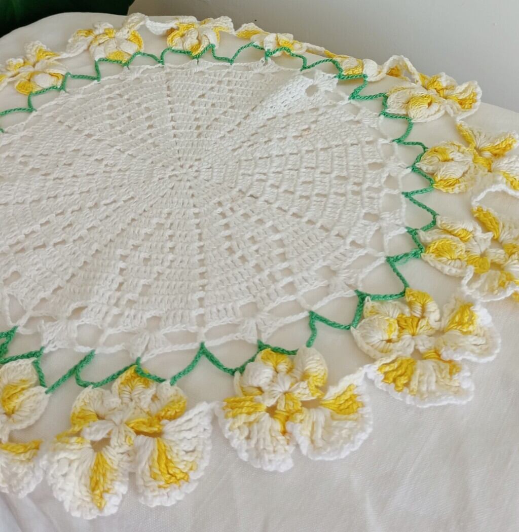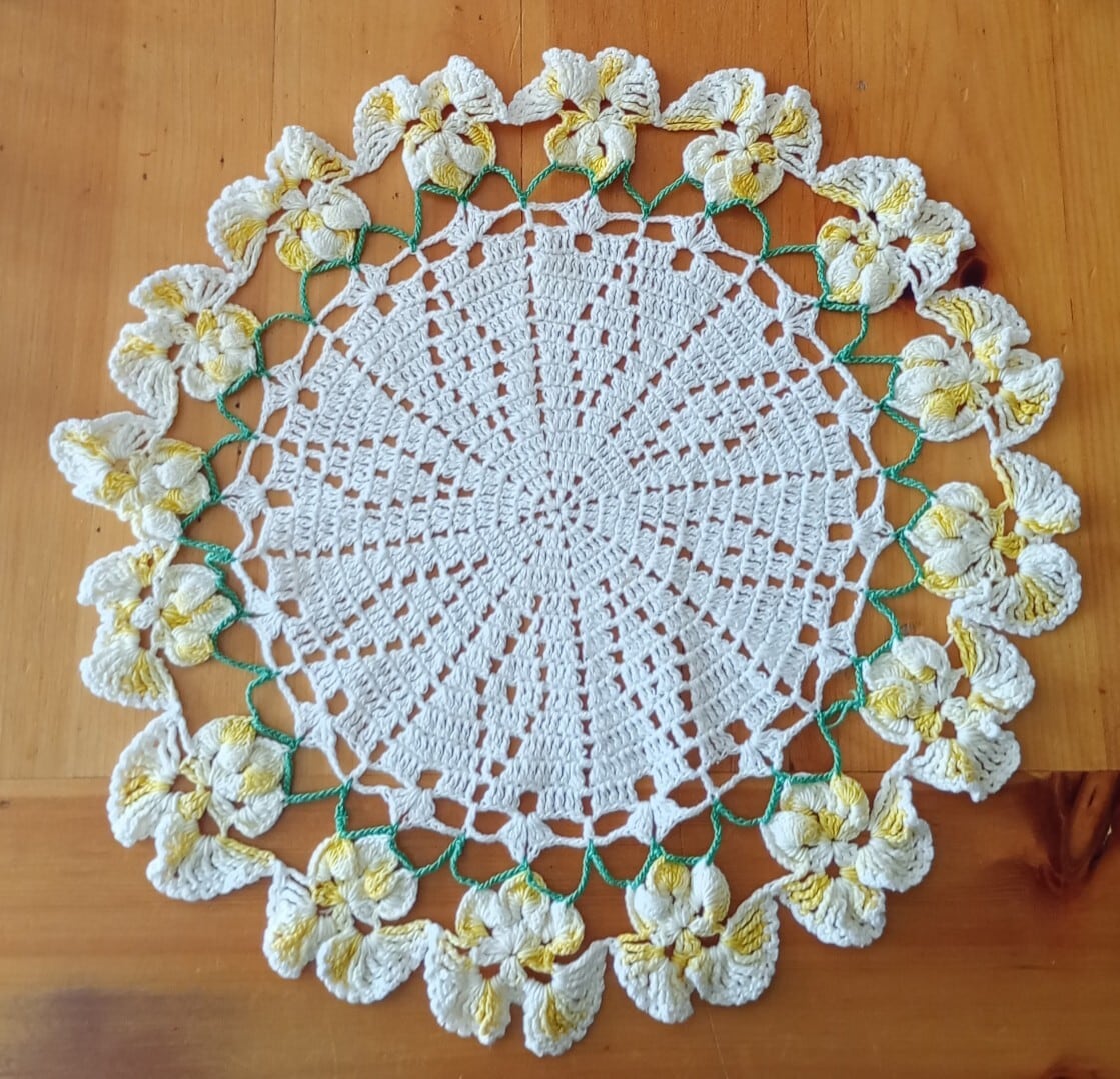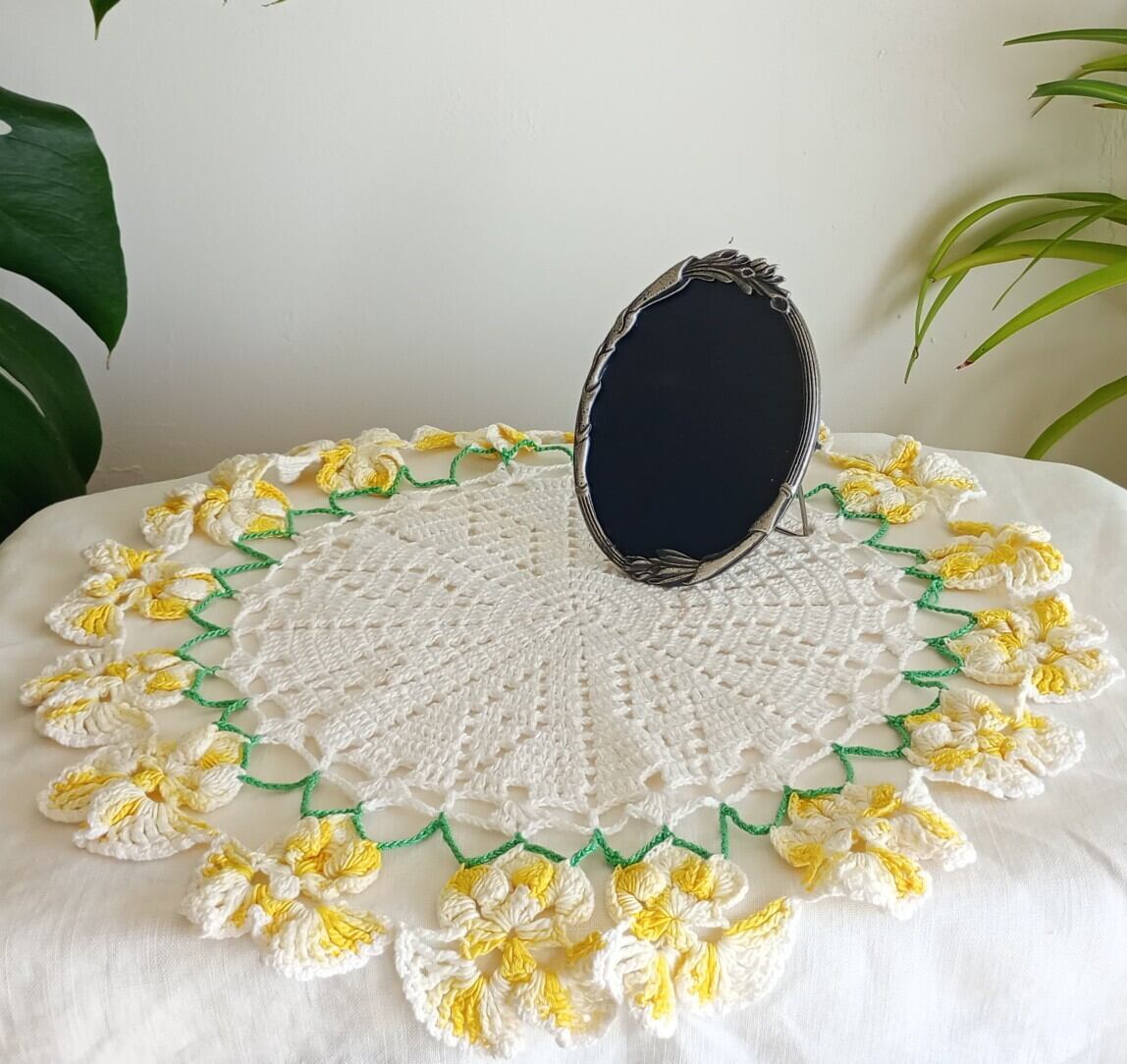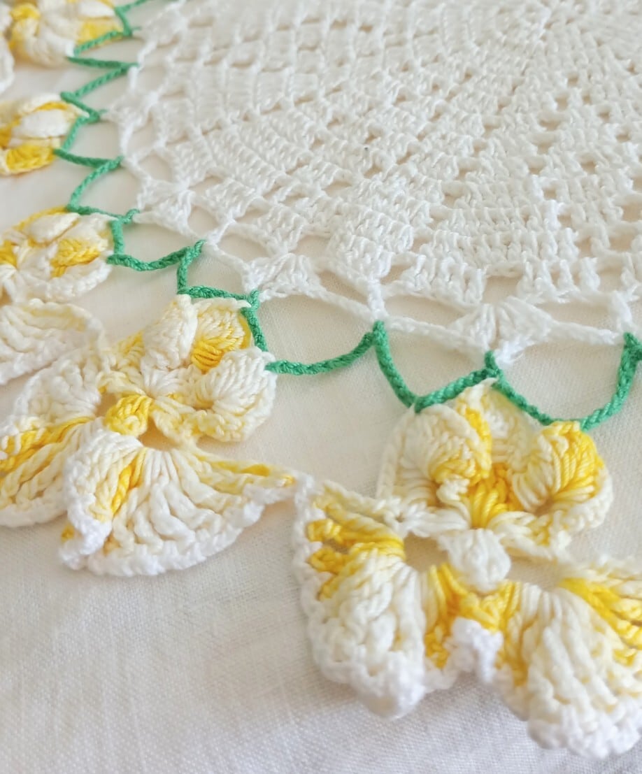 鮮やかな黄色が映える可愛らしいヴィンテージドイリーです。