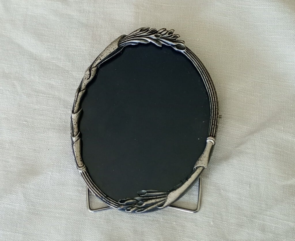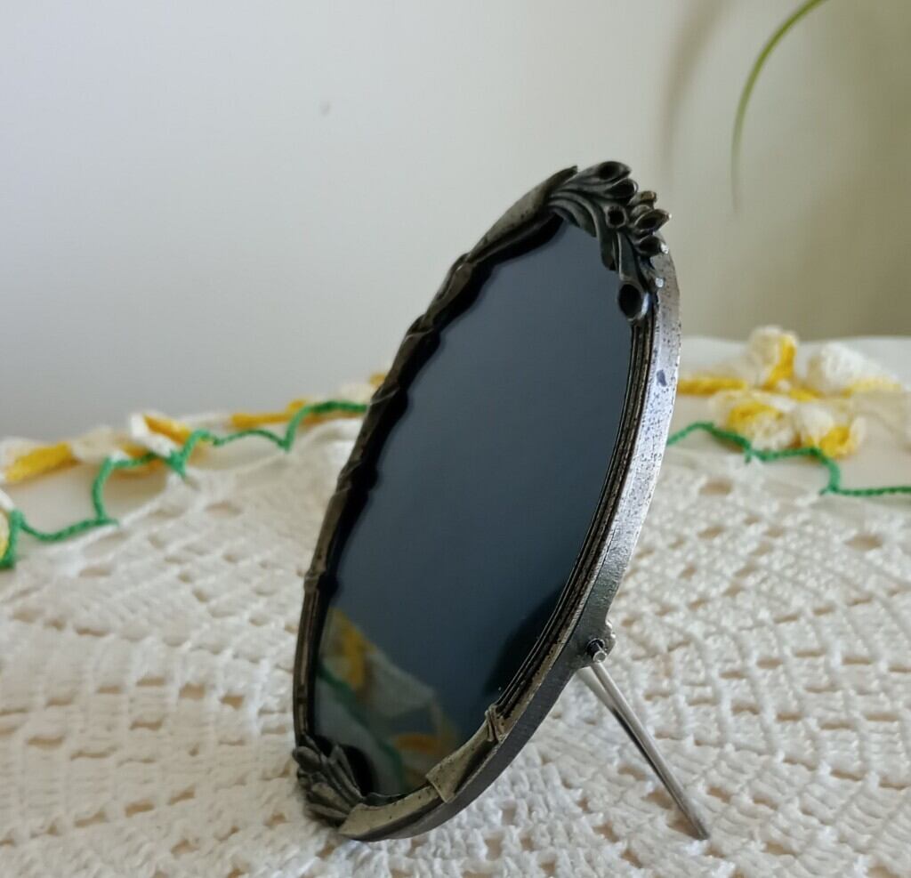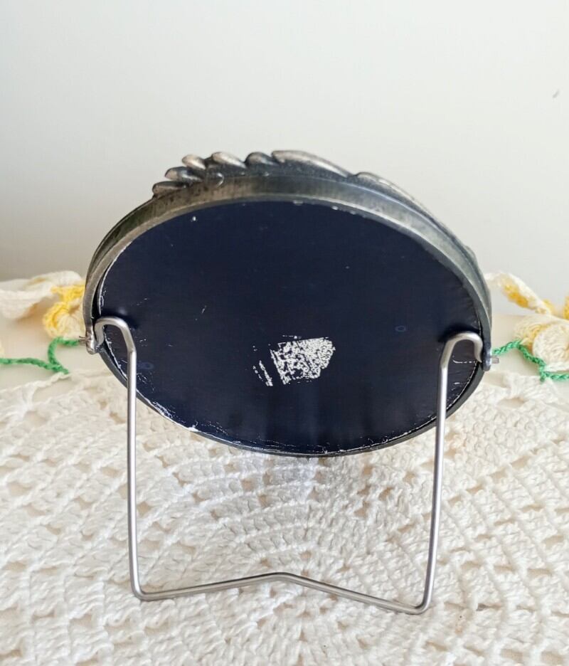 1950〜1960年代によく見られるパンジーのお花の縁取りがされたレース編みのドイリーと写真立てをセットにしました。