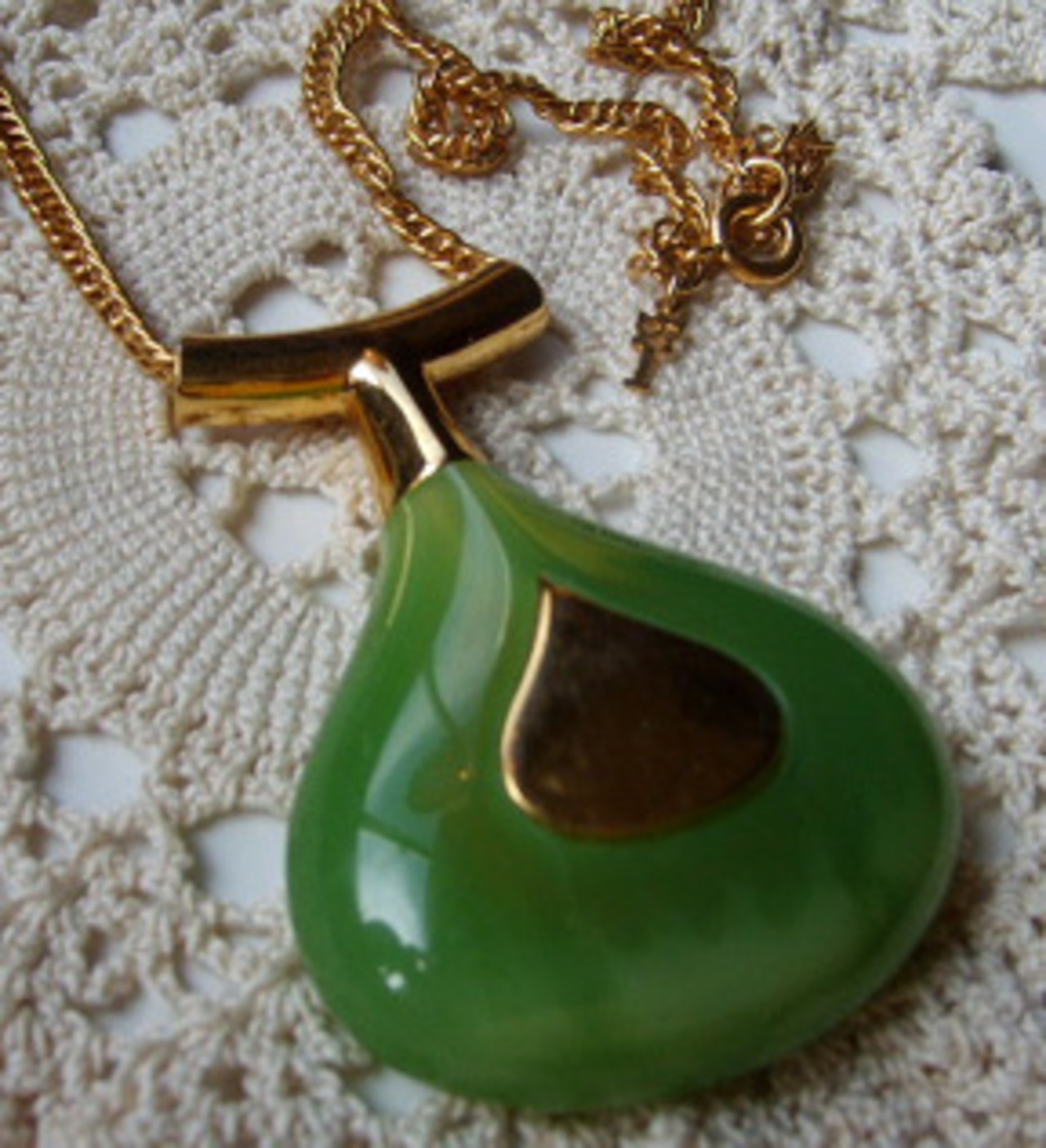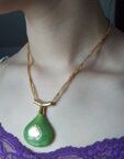 大きな樹脂製のグリーンのピースが個性的なクラウントリファリのペンダントネックレス。