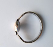 イエローゴールドカラーの伸び縮み可能なメタルバンド、美しいデザインの女性用腕時計です。