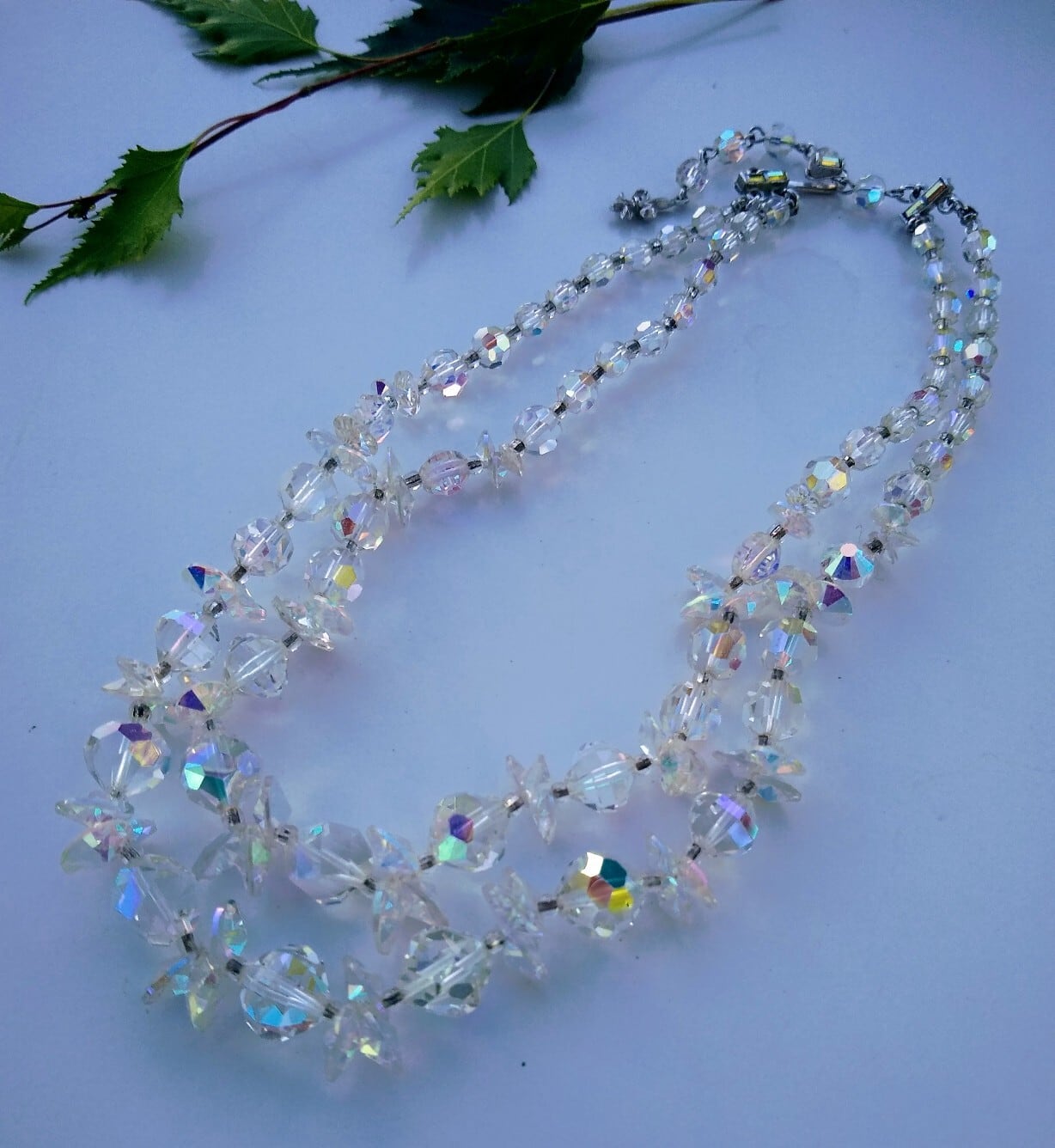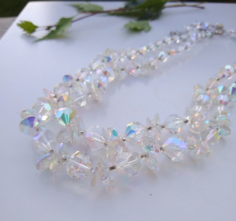 ファセットカットの大き目ABクリスタルビーズを用いたVendome(ヴァンドーム)のヴィンテージネックレス。