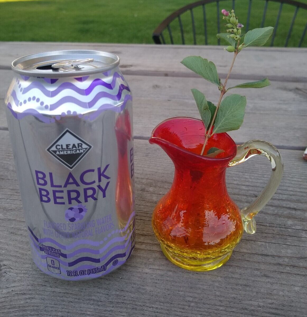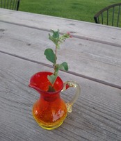 赤、オレンジ色、黄色のグラデーションとひび割れ模様(クラックルガラス)がとても美しいガラス製の小さなアンティークピッチャー。