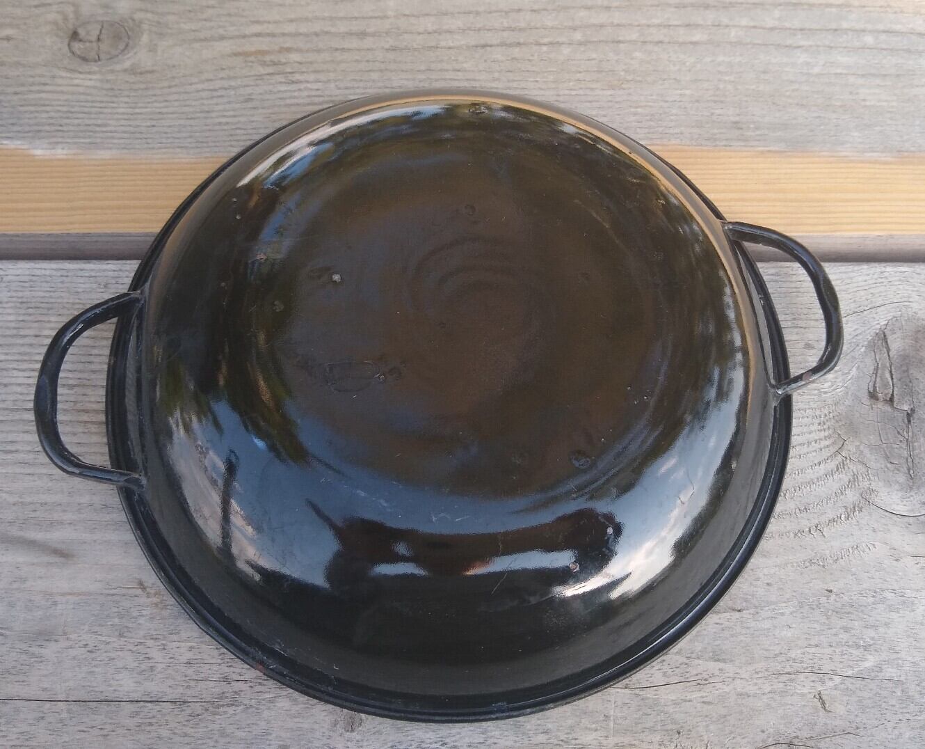 アンティークホーロー、ブラックエナメル両手鍋です。