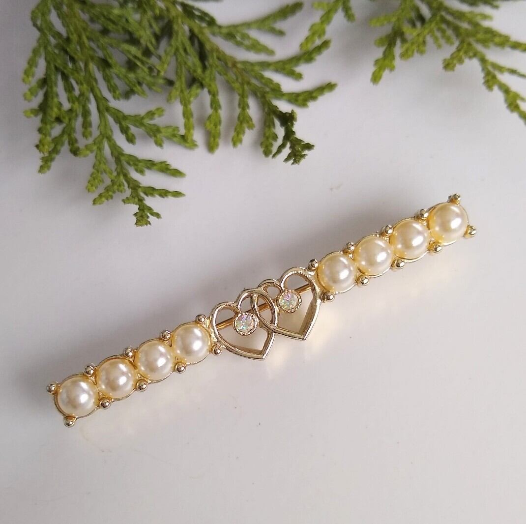 フェイクパールとラインストーンのバーブローチ。