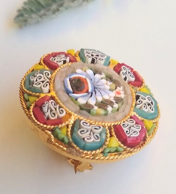 イタリア製のヴィンテージマイクロモザイクブローチ