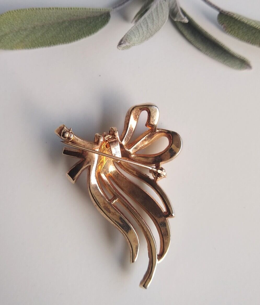 クオリティーの高いトリファリ、アルフレッド・フィリップデザインのリボンブローチ。PAT PEND(デザイン特許出願中)の刻印のある古いお品です。