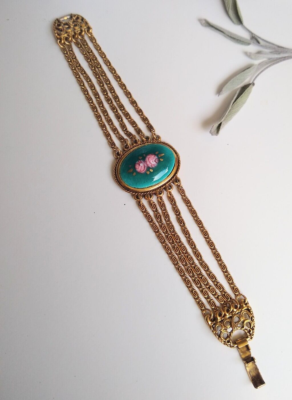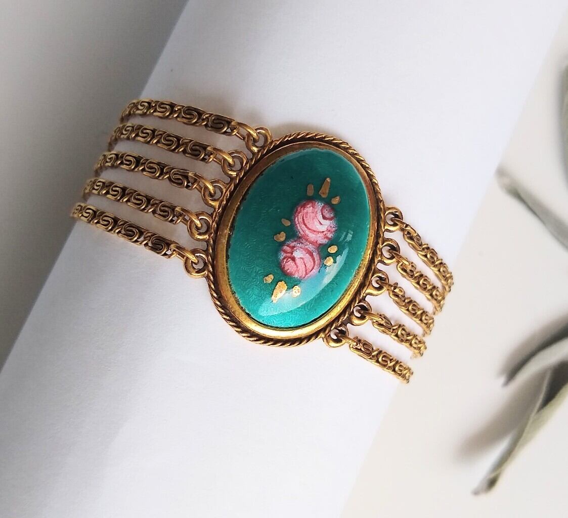 色鮮やかで艷やかなピンクの薔薇と深い青緑色のギロッシュエナメルが美しい