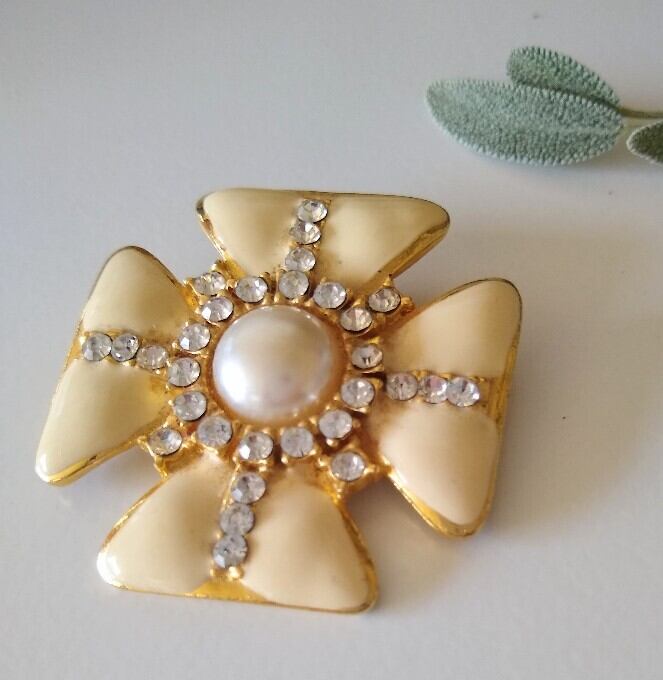 クリーム色のエナメルのマルチーズクロスを象ったシャネルのヴィンテージブローチ。