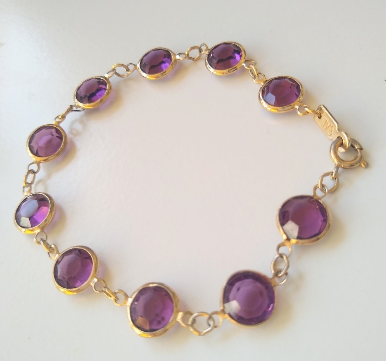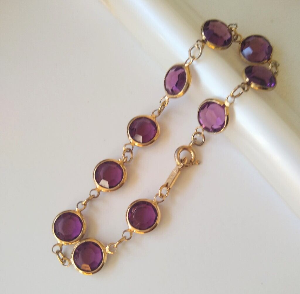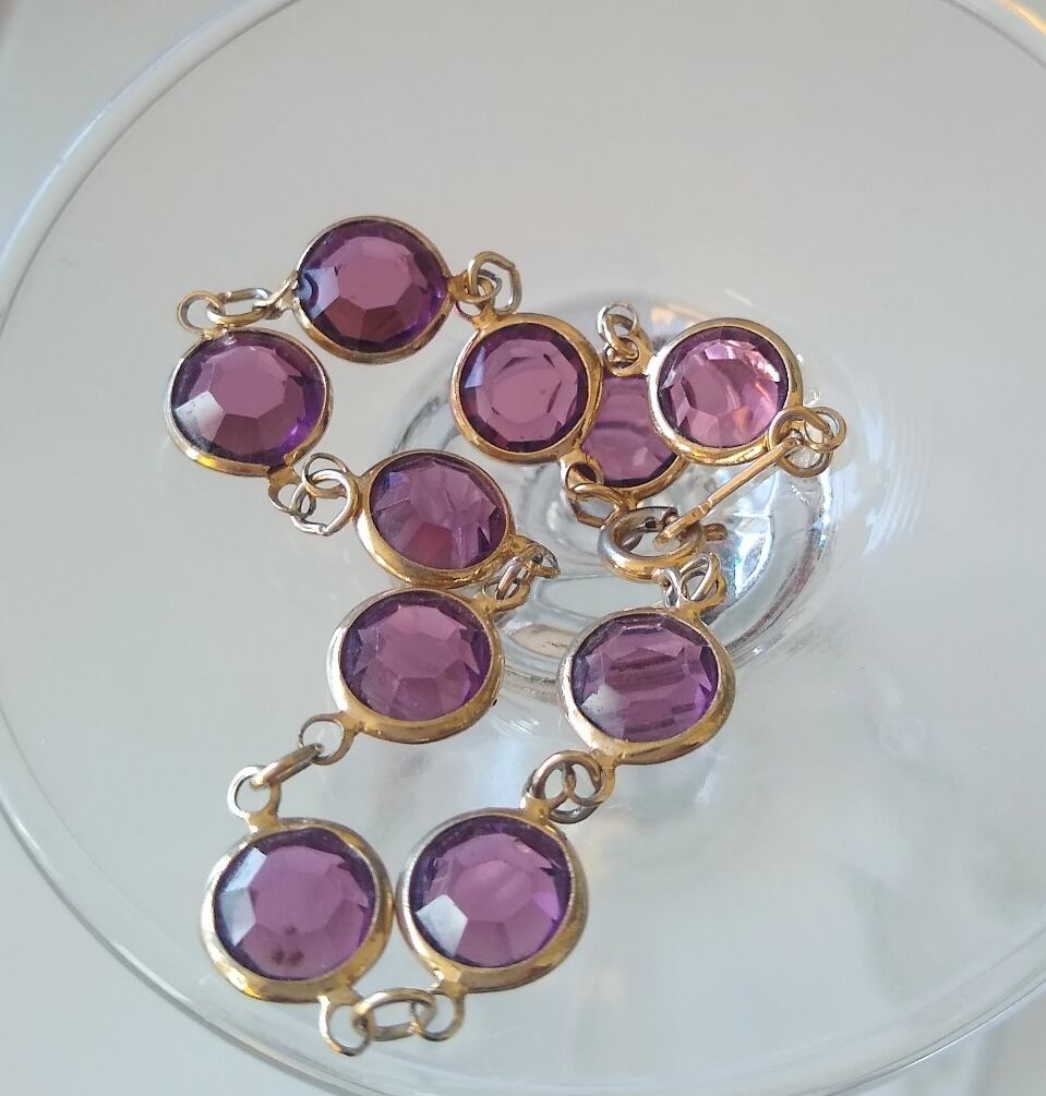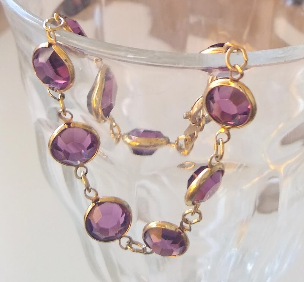 直径8mmのカットの施された美しいパープルクリスタルを繋げたヴィンテージブレスレット。