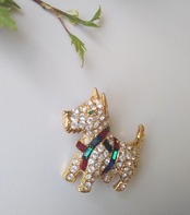 イエローゴールドカラーメタルをベースに可愛らしいテリアのブローチ。