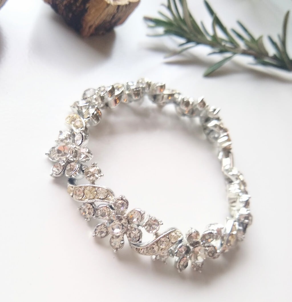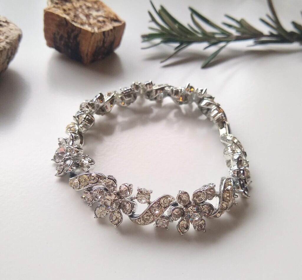シルバーカラーメタルをベースにキラキラと光るラインストーンが素敵なリスナーのヴィンテージブレスレット。