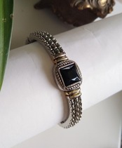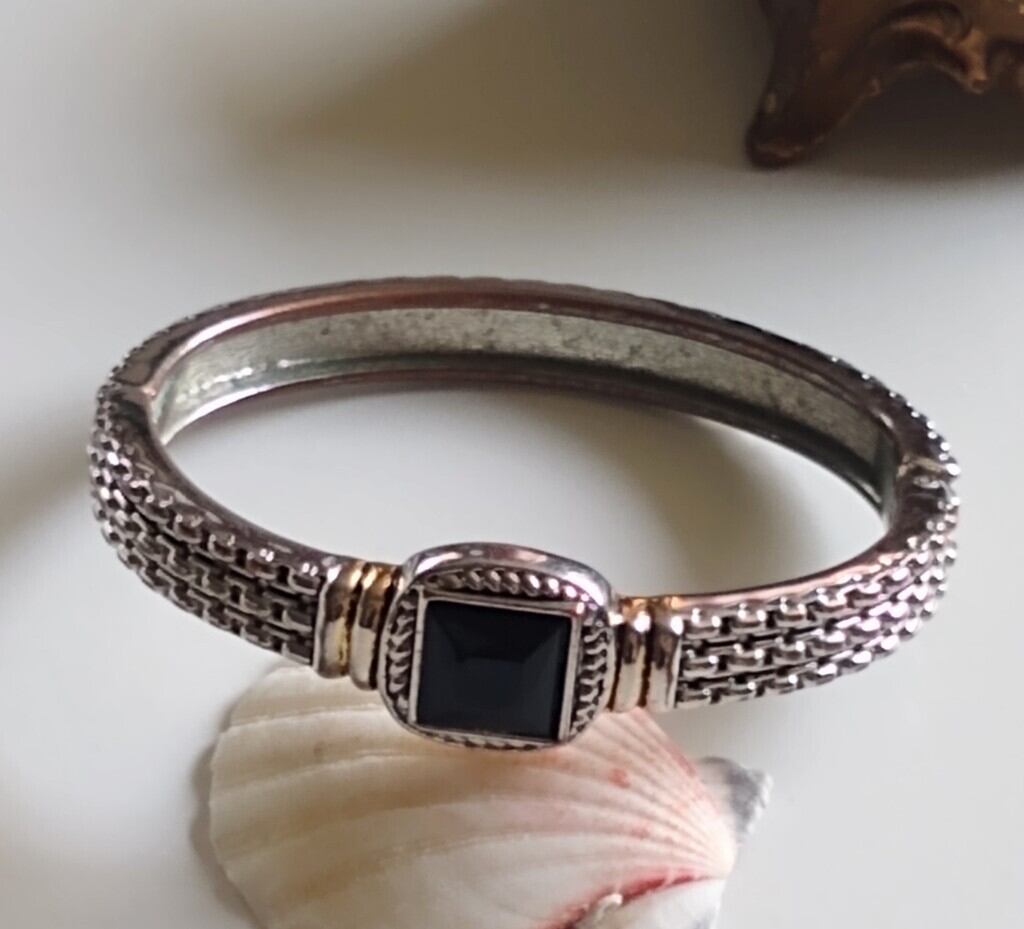 シルバーカラーメタルをベースにブラックストーンが映えるヴィンテージカフブレスレット。
